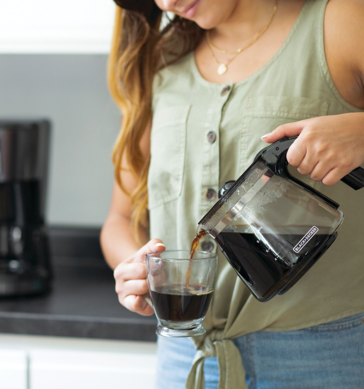 Brew coffee just the way you like it. This 12-cup* coffeemaker features VORTEX Technology, which evenly saturates coffee grounds for full and rich flavor extraction using optimal water temperatures. You can change the brew strength with the option for a slower brewing process and stronger cup of coffee. Set how long you want to keep coffee warm after brewing with the adjustable keep warm timer (options for 30, 60, 90, 120 min, and OFF). Sneak-A-Cup Technology lets you pour a cup of coffee before the rest of the pot has brewed--all without any drips or spills. Other useful features include: Smart-Clean automatic cleaning cycle, 12-cup* Duralife glass carafe, washable brew basket, and Keep Hot heated carafe plate to make sure coffee is hot when you're ready to drink it