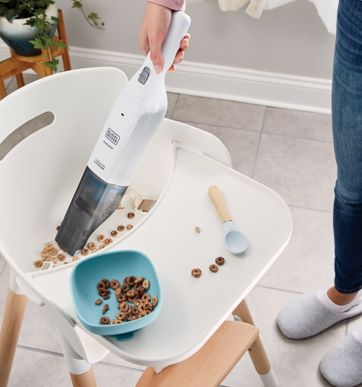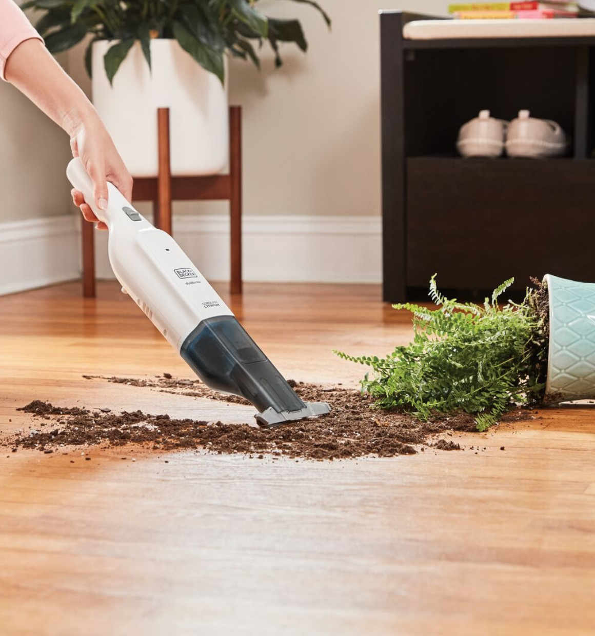 You can be ready to clean up those spills with the BLACK+DECKER® dustbuster® 12V MAX* AdvancedClean™ cordless hand Vac. 3X more suction** makes clean up easy. And the extra-wide nozzle accelerates the tidy-up process.