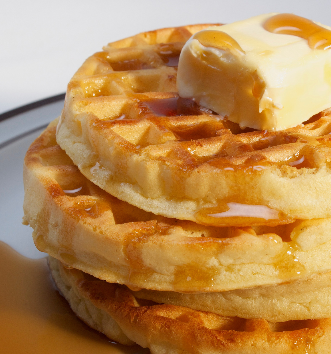 7-1/4-inch-diameter Belgian waffle is already divided into four sections